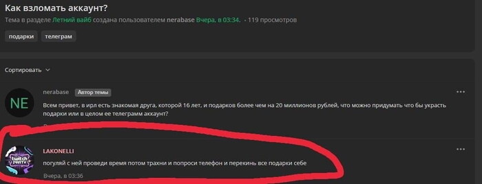 Вот так история. 20-летний "кавалер" позвал 16-летнюю Лизу на свидание, взял у неё телефон под предлогом "скинуть музыку", а сам слил её NFT-подарки на 25 миллионов. Жёстко, конечно. Но тут вопрос даже не к скаммеру — он хотя бы понятен, мошенник как мошенник. А вот откуда у 16-летней девчонки 300 тысяч долларов в подарках?