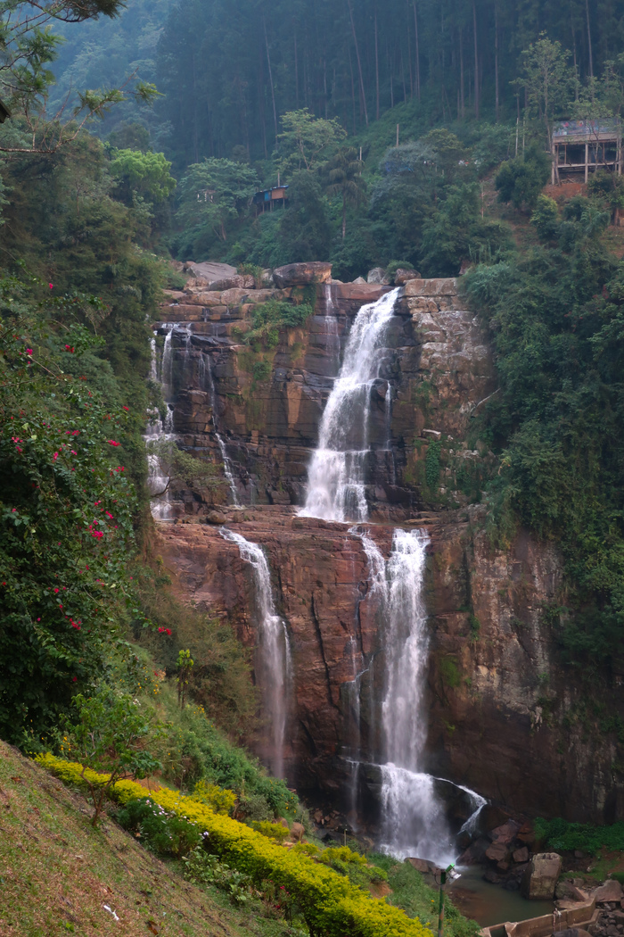 Закат в районе водопадов Ramboda Falls, и соответственно один из водопадов: