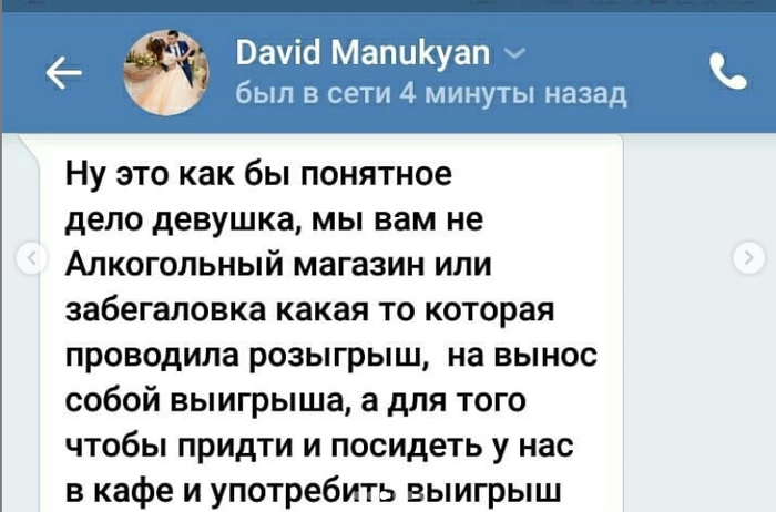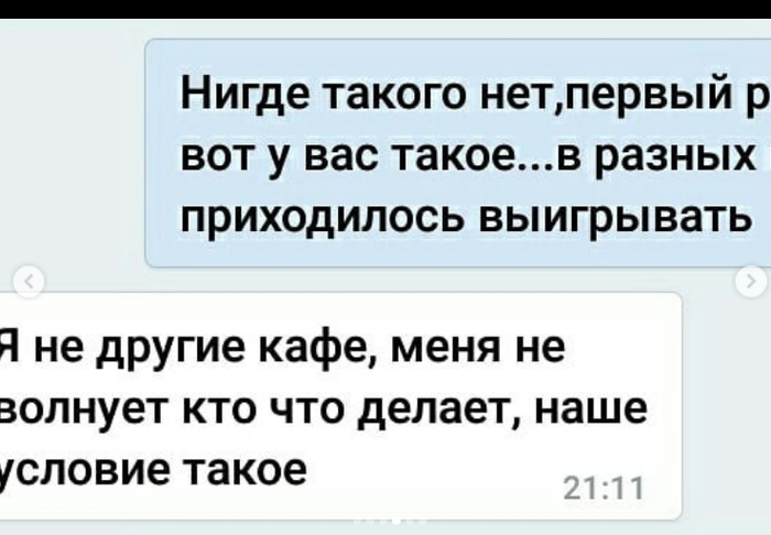 Переписка которая была, видимо, с хозяином "лаунч бара" :))