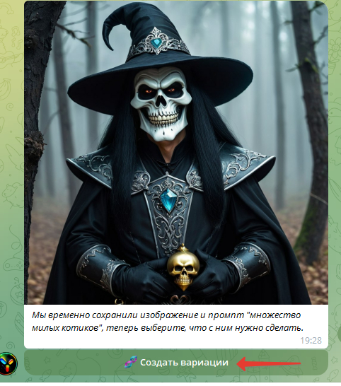 После отправки, в появившемся сообщении я нажимаю кнопку "🧬 Создать вариации".