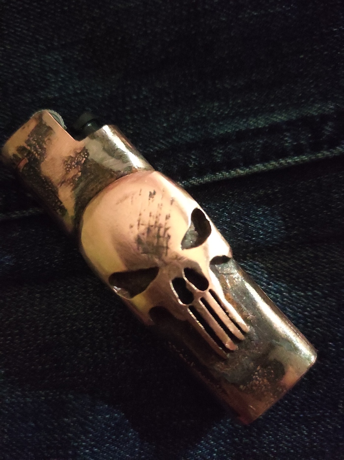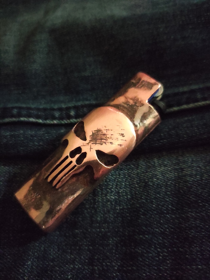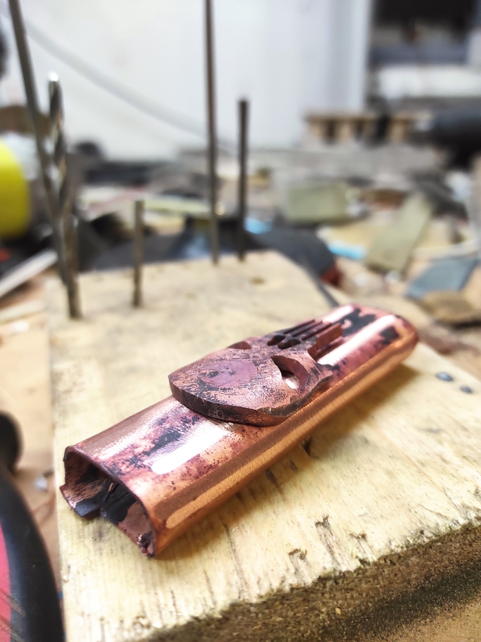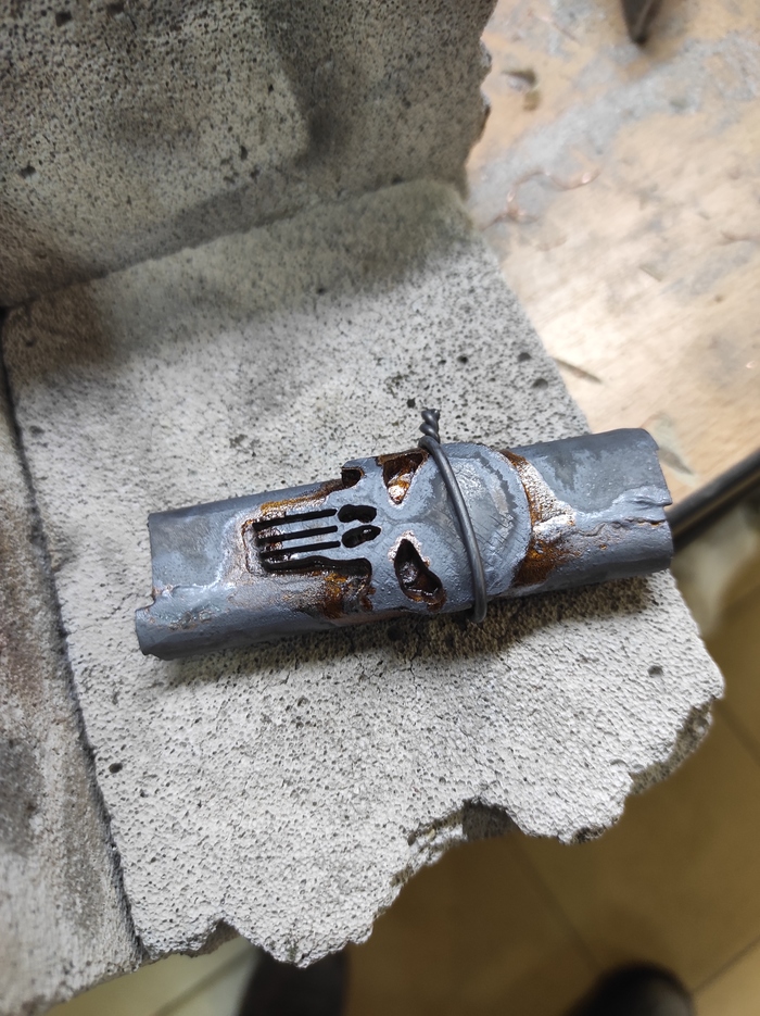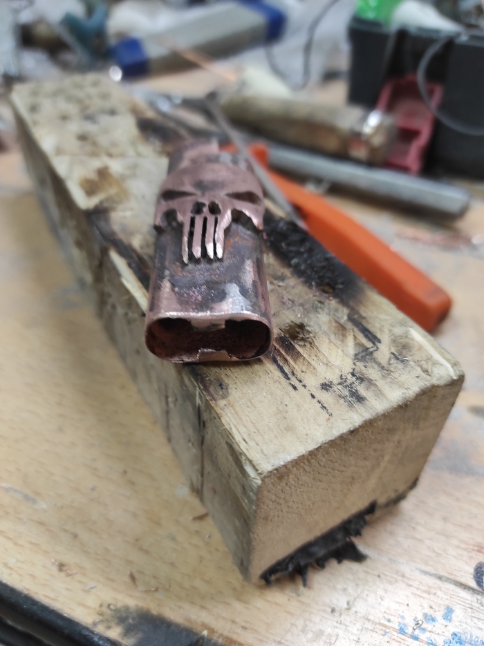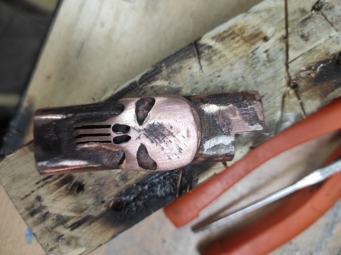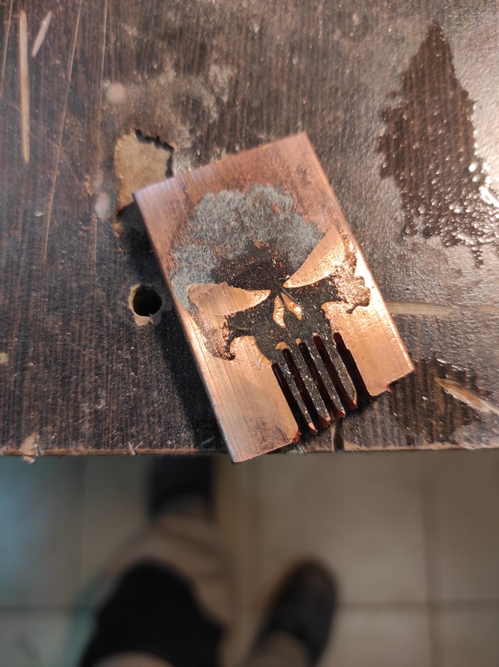Определились с тем как украшать будем. Решил сделать эмблему карателя. Печатаем на лазерном принтере и переносим методом ЛУТ на кусочек меди(гуглим).