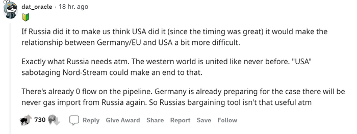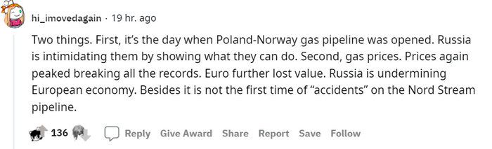 Комментарии с Reddit-а про диверсию на газопроводах