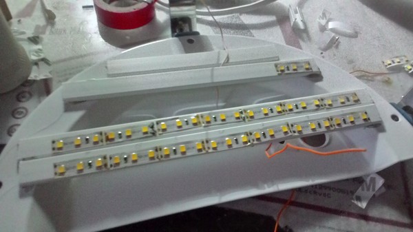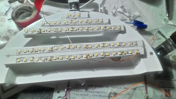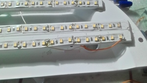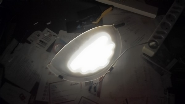 Я засунул схему выпрямителя в кабель-канал и приклеил его к обратной стороне светильника.