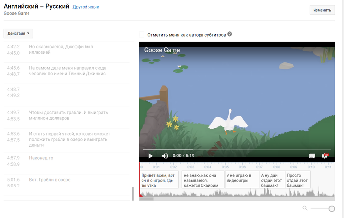 Но самое интересное в том, что субтитры в базе есть, всё переведено, но ютуб почему-то отказывается добавлять их.