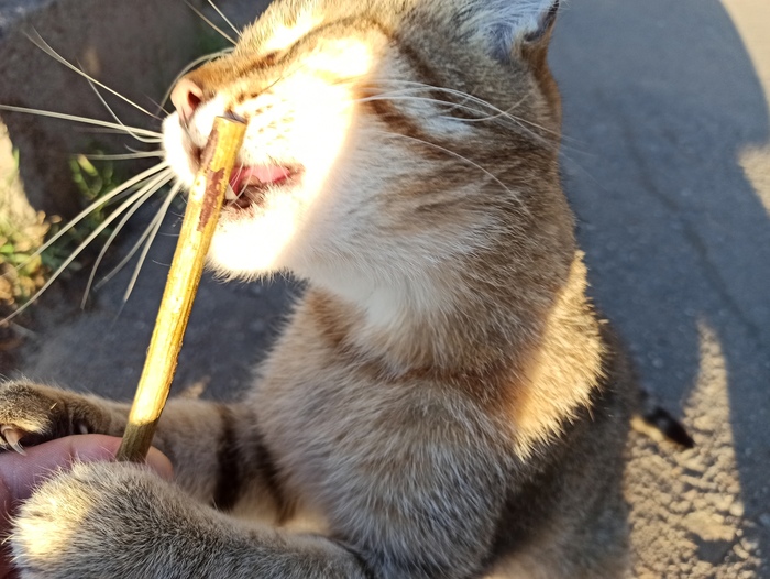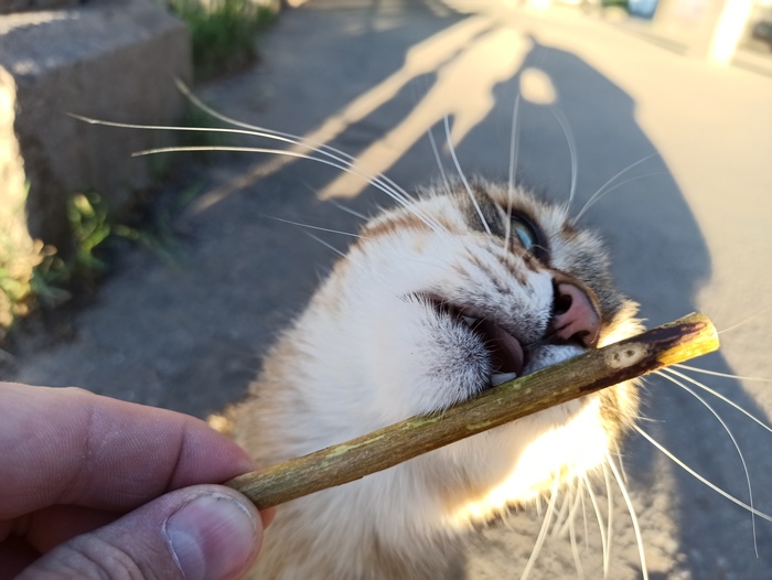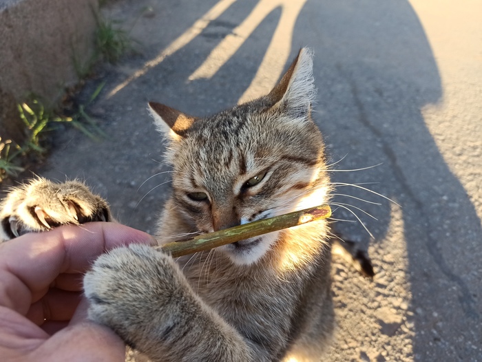 Всегда ношу с собой эту палочку(кусок ветки) и если встречаю кота даю ему немного прибалдеть. Купил эти ветки несколько лет назад на Али. Или мятой пропитаны, а может растение такое. Если кто знает, что это напишите.