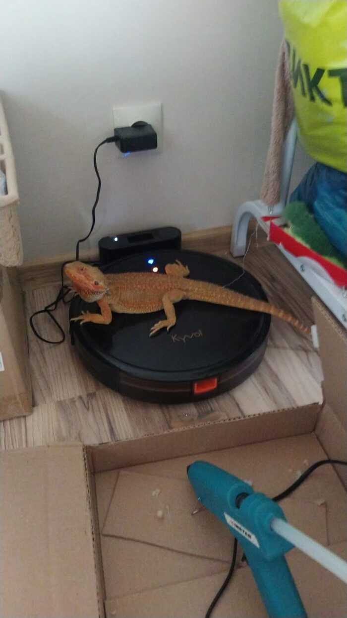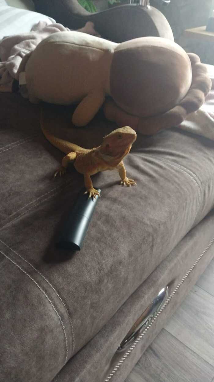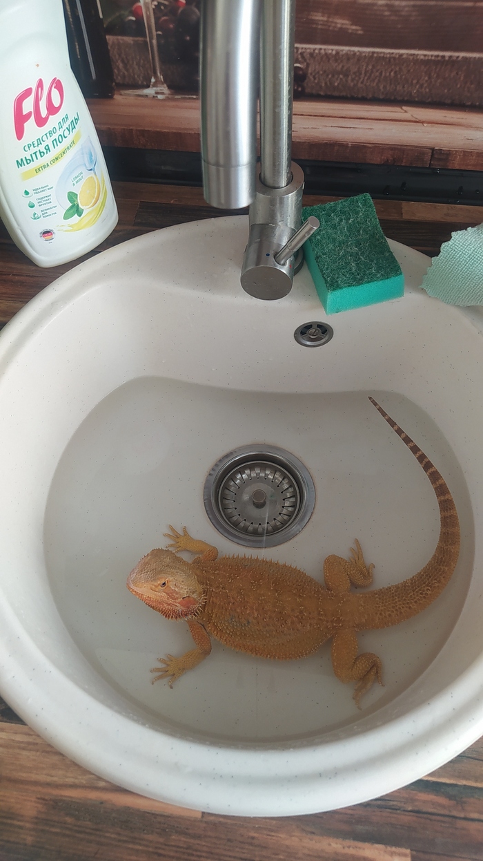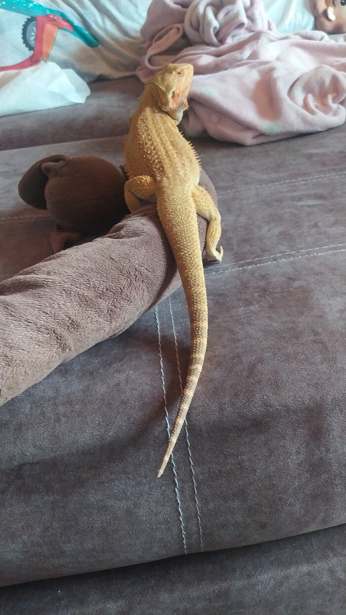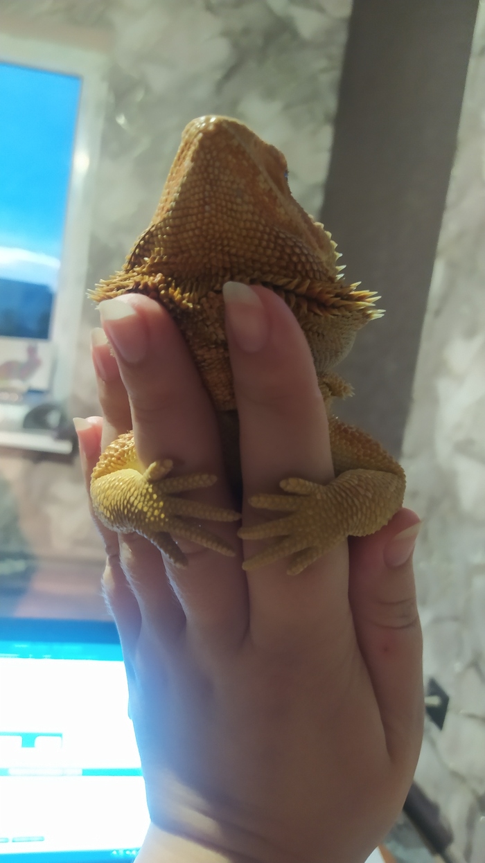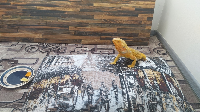 А это наш ящер поехал с нами отдыхать. Зовут Квик, бородатый агамыч, очень милый и добрый, но гад такой, от стресса переезда или жары не ест овощи/фрукты 2 дня, вечером вернёмся домой, покормим сверчками