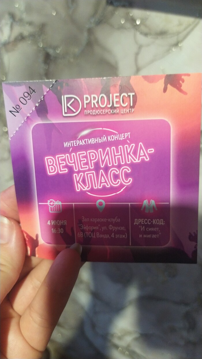 А это билет на отчётный концерт младшего сына, на который мы не попали, так как он соизволил поболеть ветрянкой в первый день нашего отпуска...