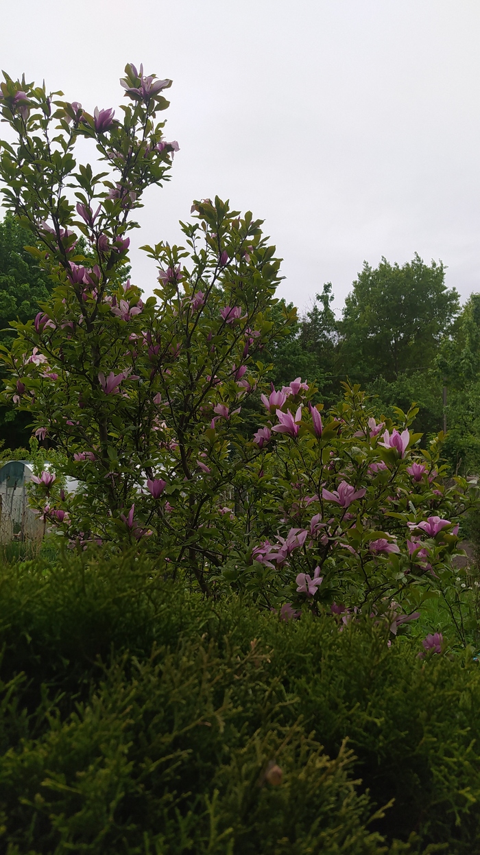 А это на даче цвели магнолия, рододендрон и маргаритки