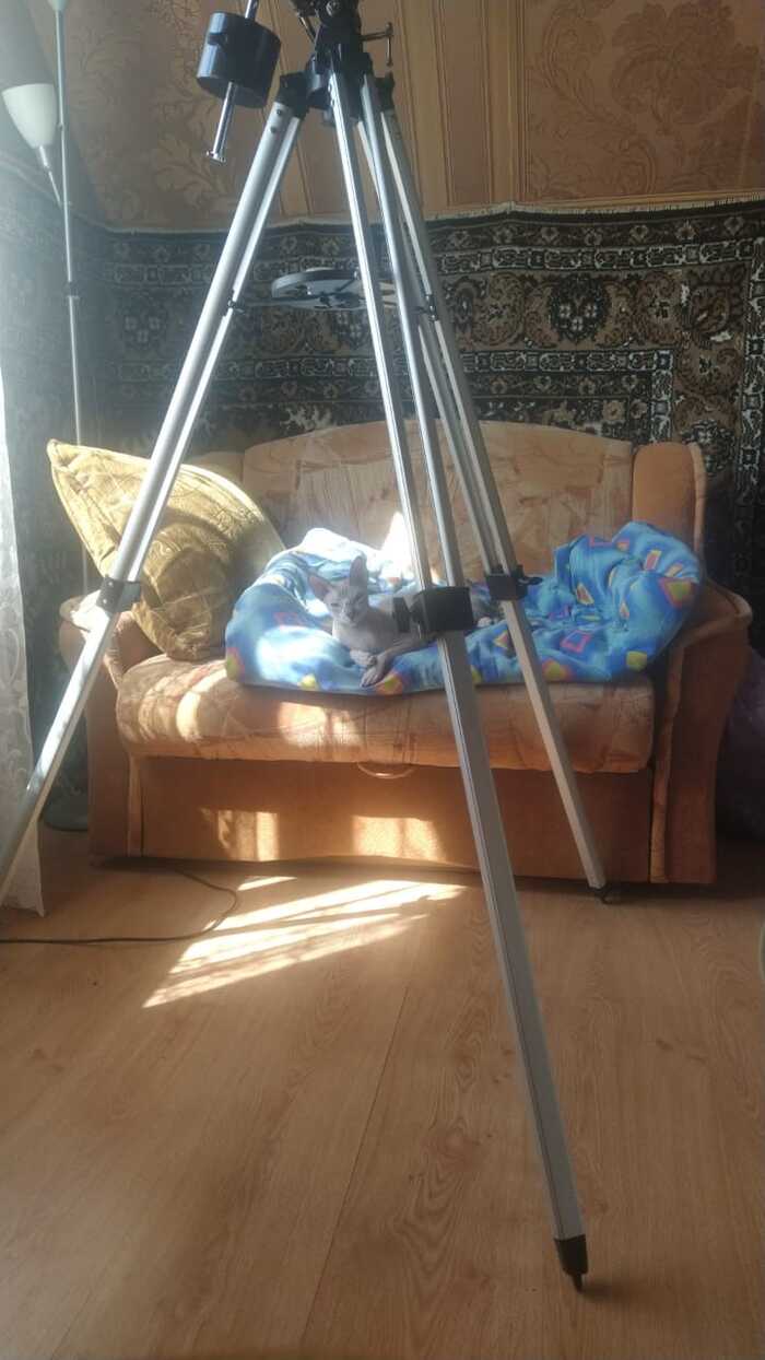Это лысый отдыхает на даче у телескопа. Ну как же без котиков