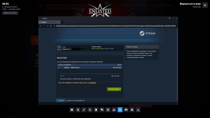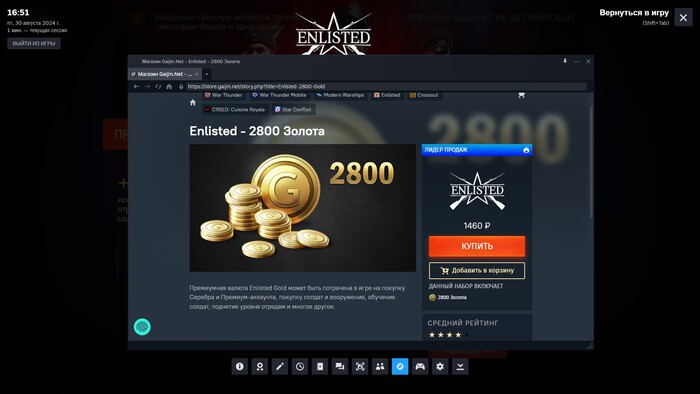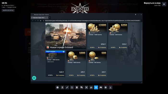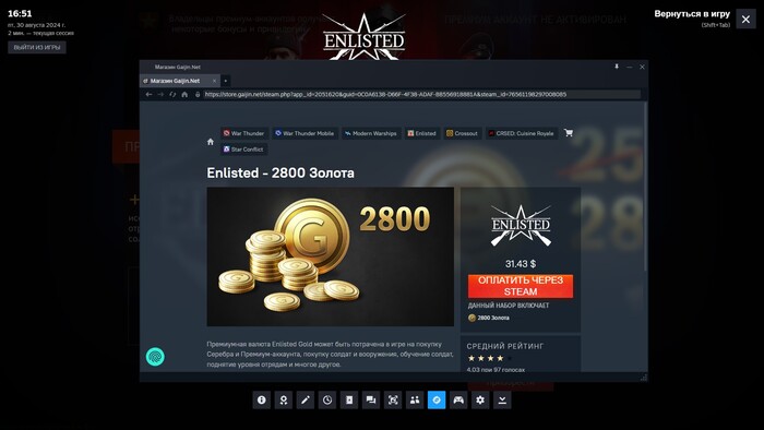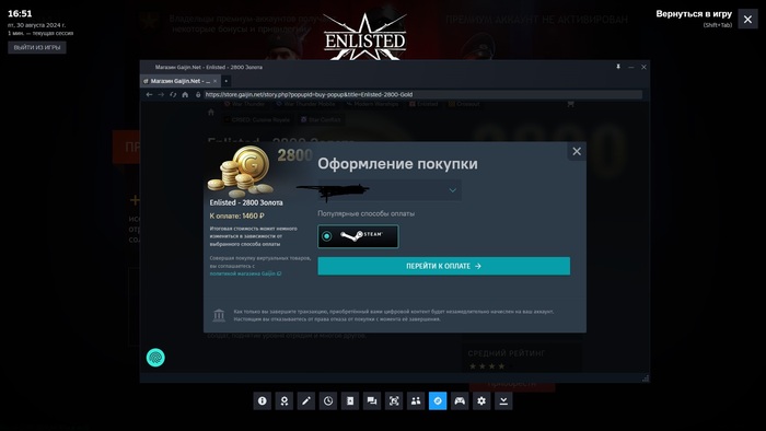 Недавно в Steam вышла игра Enlisted от Gaijin Entertainment. Раньше я в нее играл, и решил начать играть заново в Steam. Поскольку игра мне нравится решил купить премиум аккаунт, смотрю цены