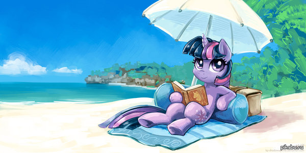 nikimi 10 лет назад Отдых от чтения За чтением на пляже. Как же ещё отдохнуть от чтения? My Little Pony Twilight sparkle Пляж