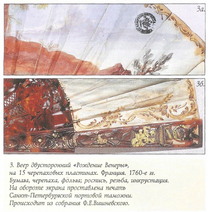 В перечне ценных предметов, изъятых у сторонников царевны Софьи - князя Василия Голицына и казненного боярина Федора Шакловитого, - упоминались опахала и веер.
