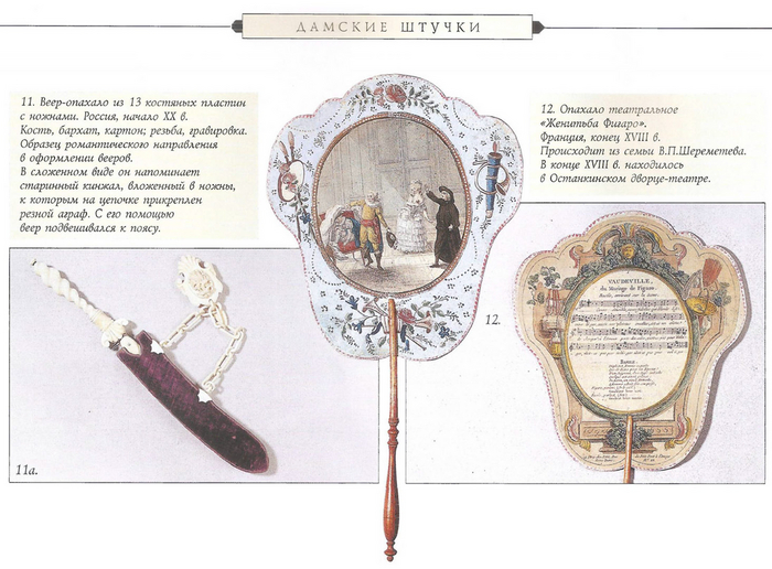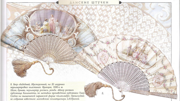 Складной веер стал неотъемлемой частью дамского гардероба, без которой не обходилось общественное мероприятие. В руках дамы веер становился активным элементом ее наряда, выразительным атрибутом всех мероприятий - от балов и приемов до церемоний и празднеств.
