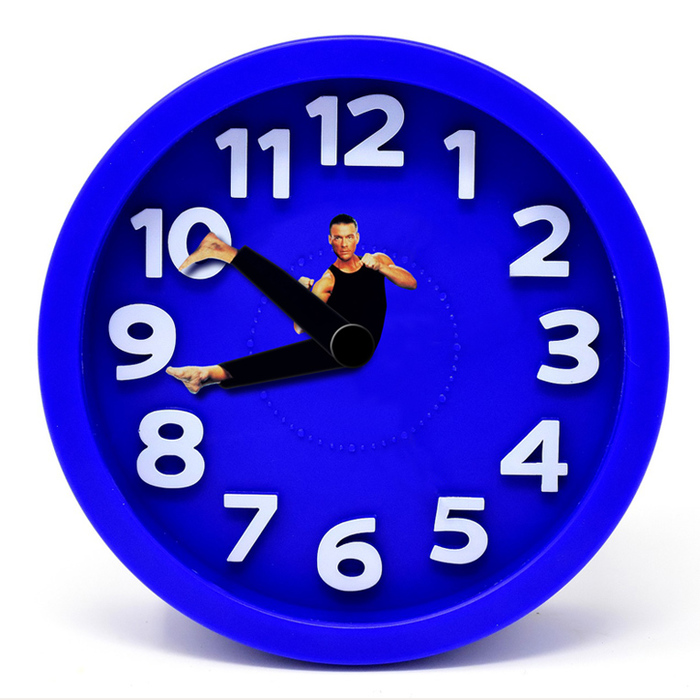 Часы с Жан-Клод Ван Даммом, в которых он в 9:15 и 21:15 показывает свой фирменный шпагат. Надо только распечатать и приклеить торс к основанию часов и на стрелки наклеить ноги.