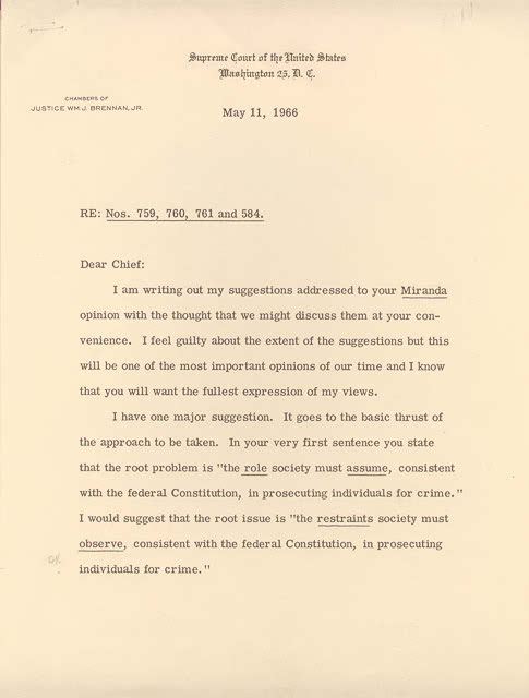 Как выяснилось, в процессе задержания Миранды ему не были устно разъяснены его права. По мнению адвоката, это нарушало 5 поправку к Конституции США, одна из частей которой гласит: