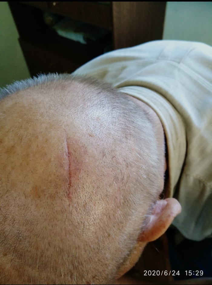 Выполняю своё обещание и размещаю фото шва на голове отца спустя 16 дней после повреждения.
