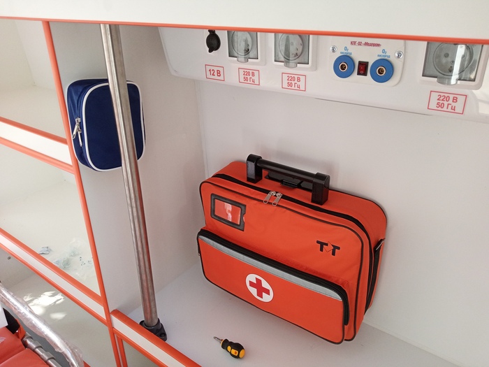 К сожалению до производителей автомобилей "скорой помощи" в России никак не доходит, что места для малых кислородных баллонов не худо бы делать сразу.