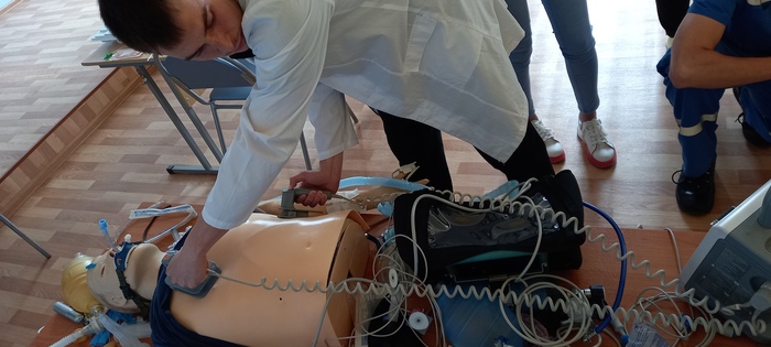 Когда оказалось, что ещё и практика по реаниматологии будет проходить не в отделении реанимации или скорой помощи - предложил организовать практическое занятие, чтоб студенты хотя бы руками посмотрели и в глазах подержали. Притащил своё оборудование и манекены (если что, тут не тот, про который я писал раньше) и вот что вышло.
