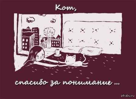 10 nyastya Спасибо за понимание 12 лет назад единственное существо, которое всегда поймет тебя - это кот. только не забывай кормить Кот Понимание