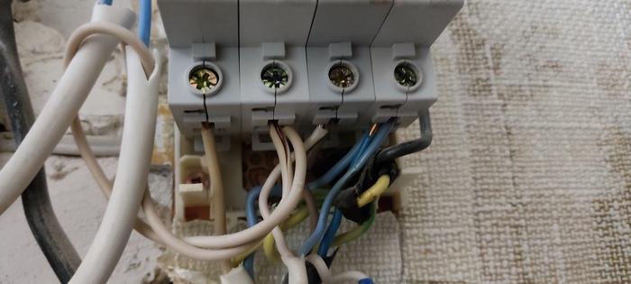 Нулевые провода, собраны в пучек и зажаты в автомат.