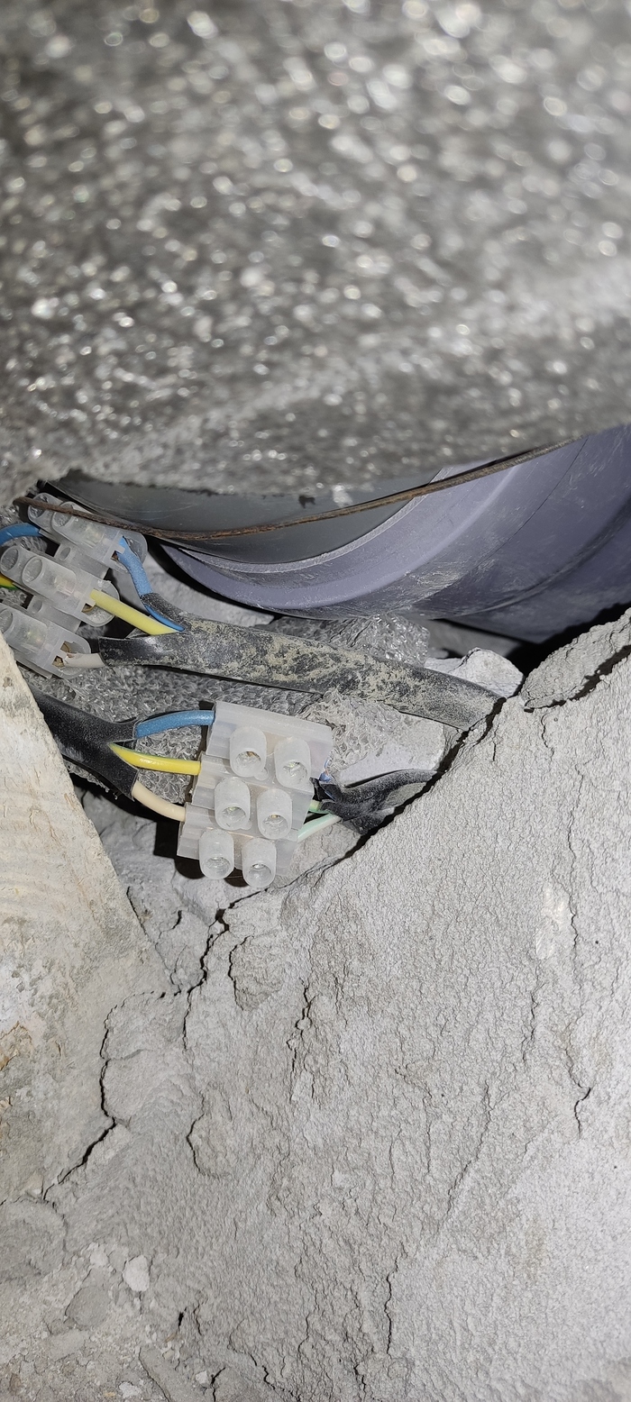 Те кто ставил вентиляцию в частном доме, коронкой прорезали провода, и соединили их клемниками. Мина замедленного действия.