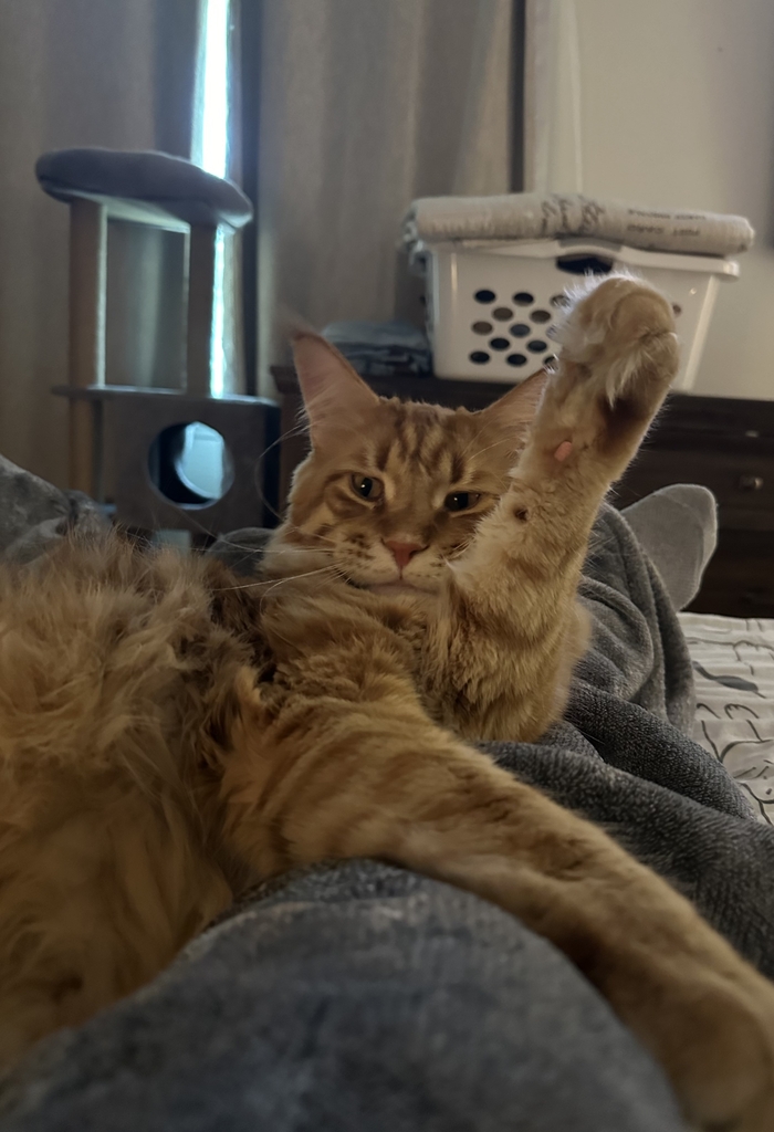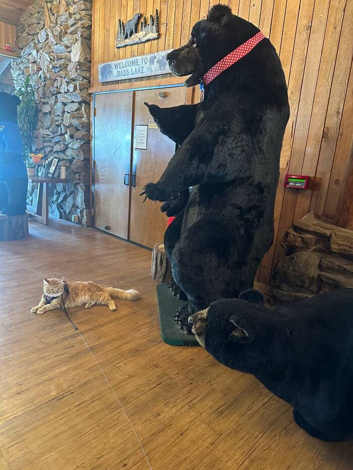 Остановились на берегу озера в небольшом домике. Освоился моментально, поставленные миски и горшок нашел без GPS. Везде с нами был в коляске, поскольку по территории даже в светлое время суток свободно шастают медведи.