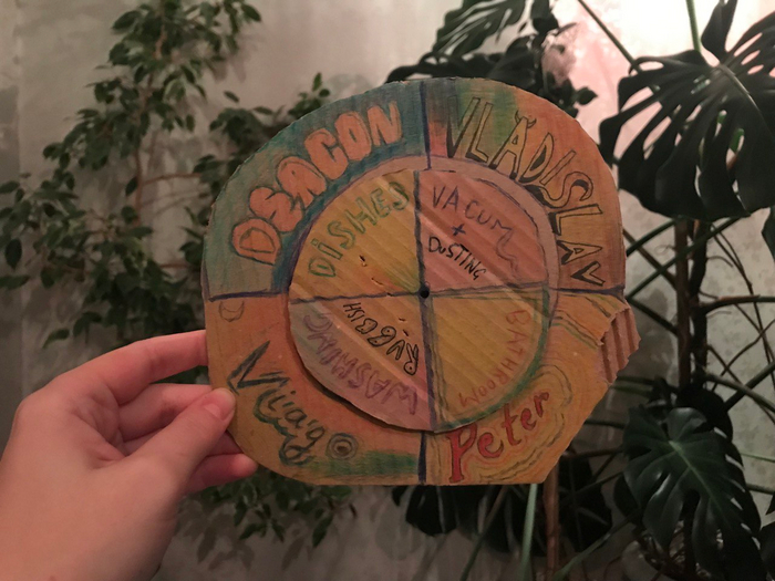 над декорациями было больше работы, особенно я горжусь графиком уборки (дикон всё ещё на посуде!)