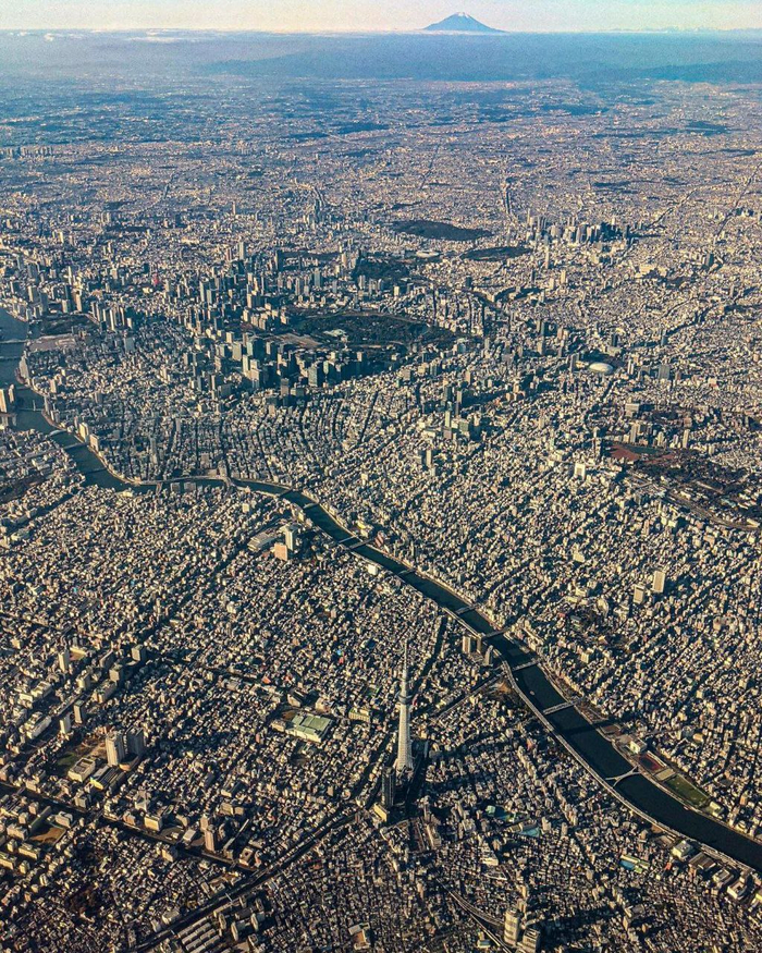 Ответ: должно быть не сложно. Огромнейший, густозаселённый город с вулканом на заднем плане. Да, это Токио.