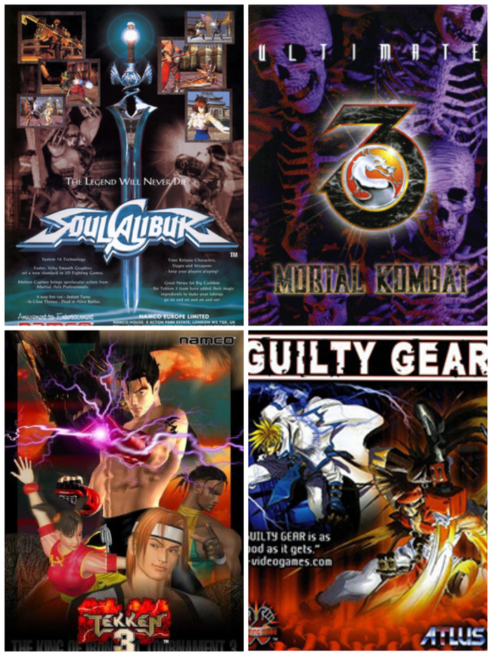 Ответ: тут почти все файтинги аркадные. МК3 вышел на автоматы в 95-м, Теккен 3 в 97-м, Соул Калибур в 98-м, а вот Гилти Гир вышел на ПС1 в 98-м.