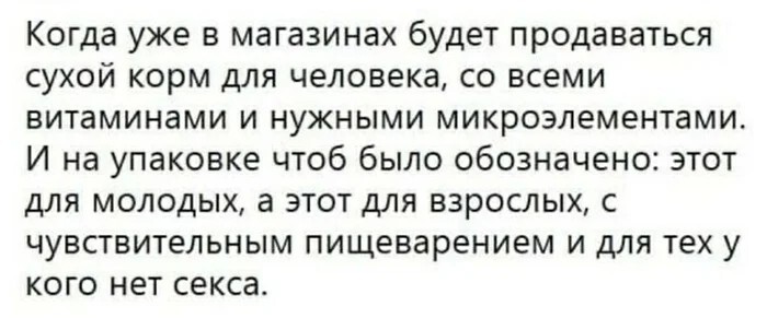 Есть ещё всякая готовая продукция, но если питаться только ей это выходить ппц как дорого.