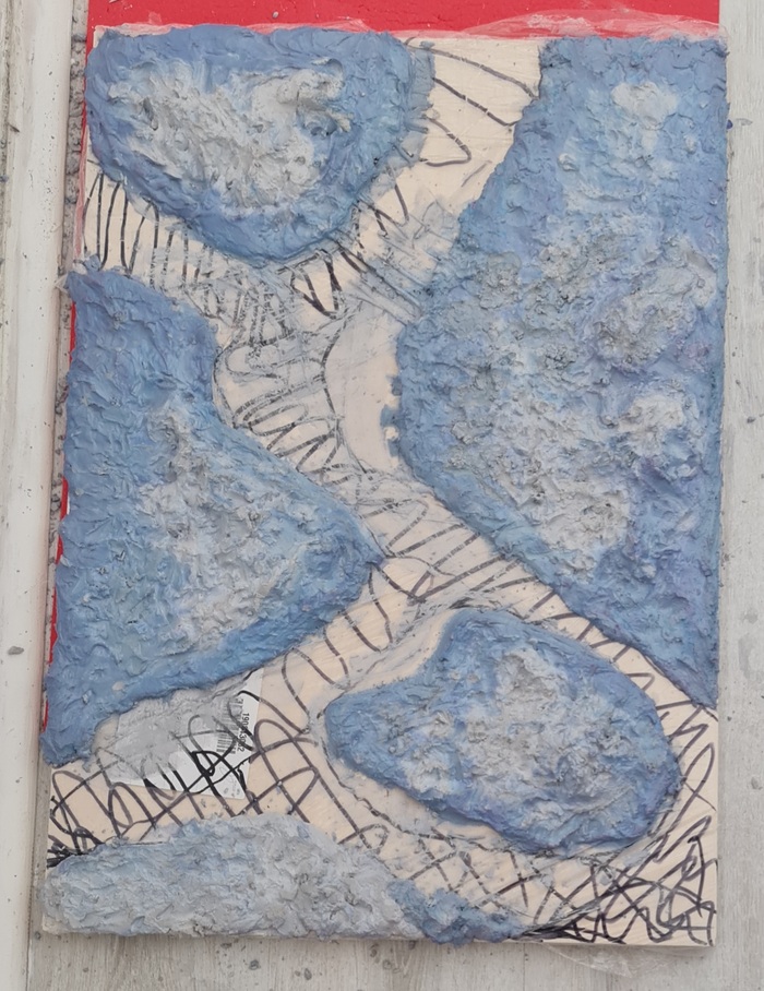 В этот раз у меня получился желаемый эффект только со второго раза. Сначала замешала слишком темный серый. Хотя получилось даже интереснее - белый провалился глубже. И обязательно красим полностью, в том числе и заготовку, фанеры не должно быть видно. Даже природой заложено, что лазурно-голубая вода в тех местах, где дно каменное)