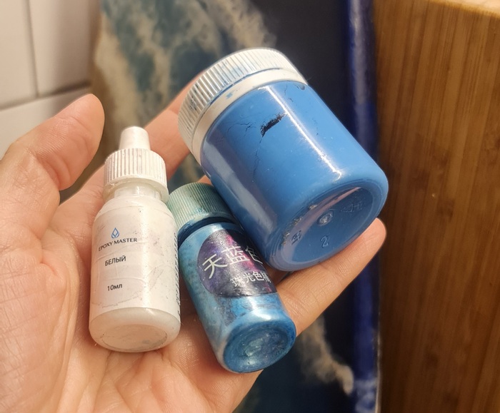 Сухие красители на мой взгляд более разнообразные. Кроме обычных цветов есть и с перламутром, и с мельчайшими блестками, которые не бесят, и даже люминофоры. Был у меня краситель - графит когда то давно с очень мелким глитером, какой же у него был глубокий цвет-прелесть. Волны на морях из эпоксидки, кстати - тоже сухой белый. Но чтобы волны были "воздушными" его замешивают в смоле без окислителя и дают постоять. Потом заливают окислитель. Вот и весь секрет кружевного моря