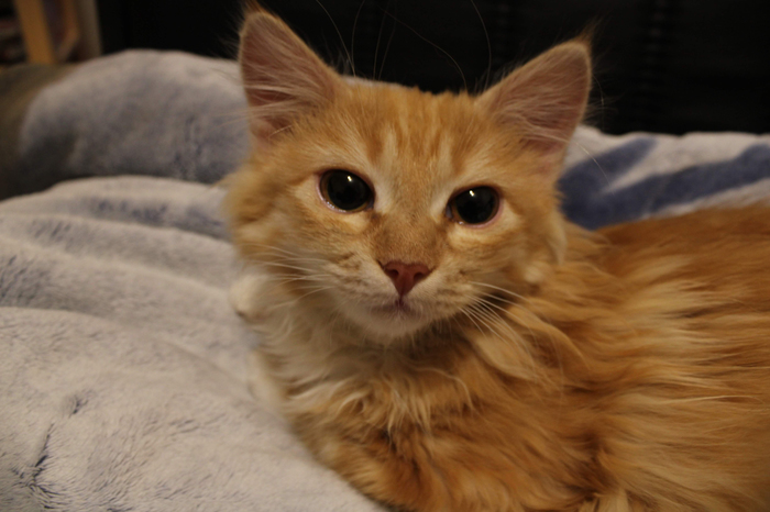 Попалась нам рыжая бестия месяц назад в холодном подъезде, не смогли удержаться и взяли погреться к себе. К сожалению, не можем оставить надолго, т.к. есть серьезная несовместимость с уже имеющимися питомцами. Всем пользователям большое спасибо заранее, что не топите и, возможно, делитесь постом со знакомыми.