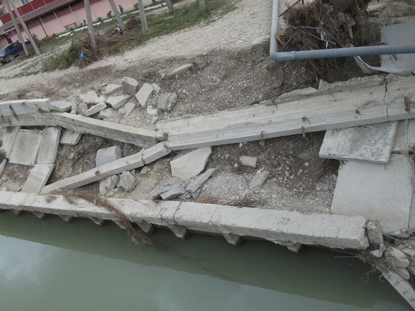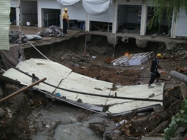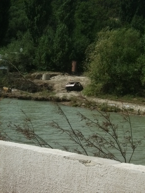 26 августа, 21:00,начинается дождь. В 23,00 был уже сильный ливень с громом и молниями. вся вода, стекая с гор, попадала в реку. К часу ночи вода полностью наполнила защитные блоки, в которые была окована эта река, и включилась сирена, добавляя впечатления.