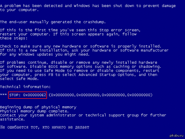 oleksa95 Хорошая отмазка 10 лет назад Не ошибается тот, кто ничего не делает. (используем в любой непонятной ситуации) [моё] Windows Работа Ошибка Отмазка Синий экран смерти