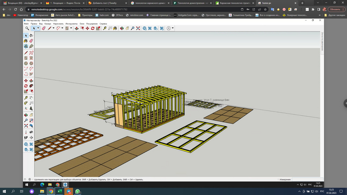 Проектировал и считал все в SketchUp. Довольно не прихотливый и не сложный в изучении 3D моделлер (хотя предпочитаю работать в автокаде). Толщина стен, пола и потолка 100 мм, утепление по кругу минватой, ветровлагозащита и OSB, на крышу - профнастил. Одна дверь и одно окно.
