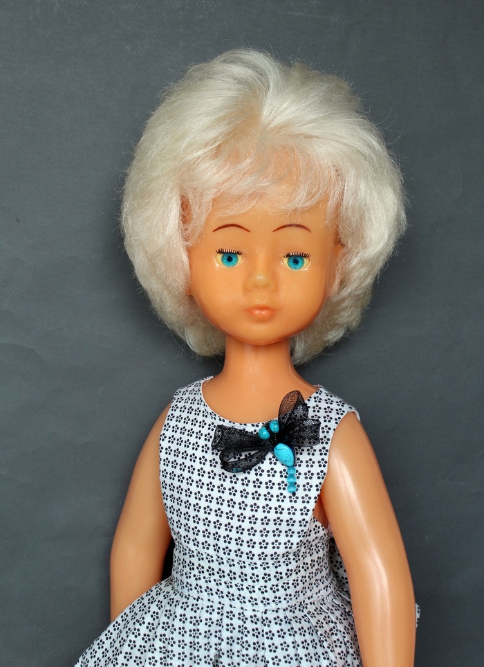 Из проблем - сколы красочного слоя и трещины, растянутые резинки, пейт (волосы) с залысинами, сломанный глазной механизм. Наряд тоже пришёл в негодность, но он-то как раз меня не беспокоил)
