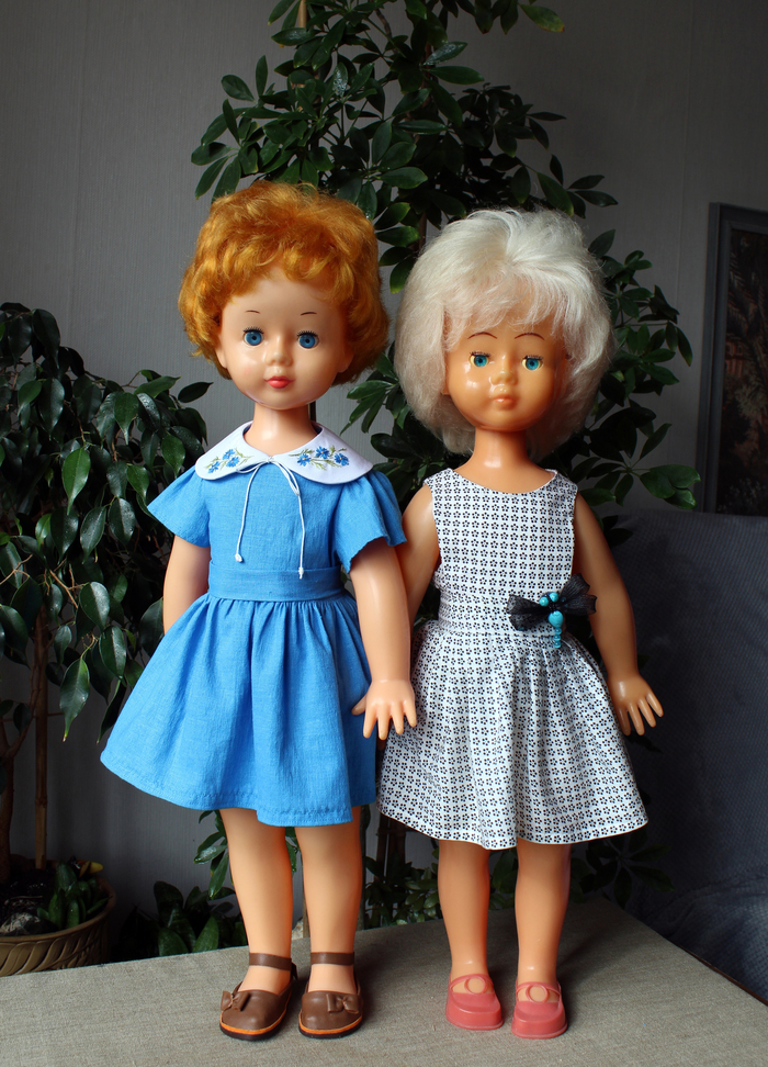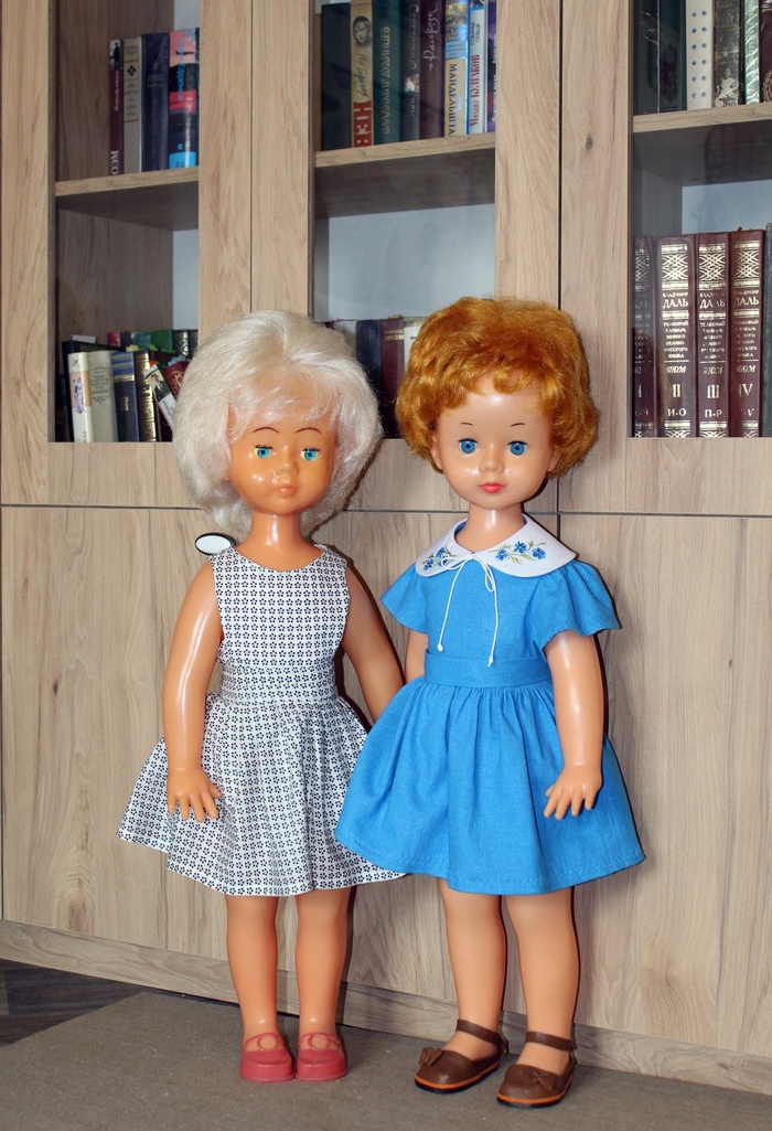 Куклы, на первый взгляд, похожи - и ростом (ок. 70 см), и фигурой, и обе ходячие. Но не сёстры) Одна родом из Вильнюса, другая - из Москвы.