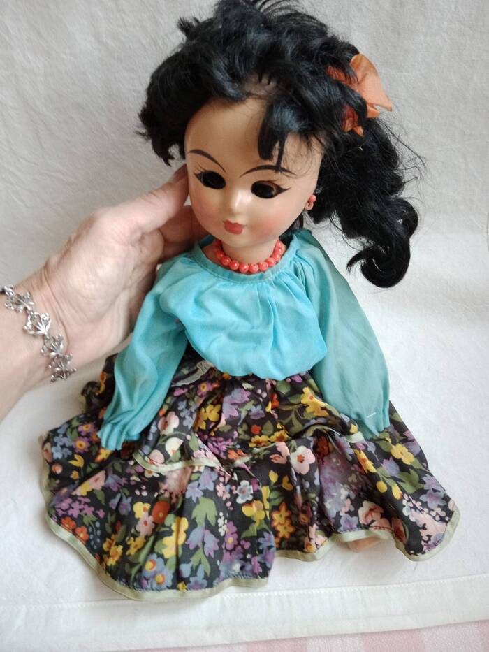 В своей прошлой жизни Цыганочка имела пластиковые бусы и серьги, текстильную "розу" в волосах. Серёжку одну потеряла, цветок поистрепался (как и весь наряд) ...
