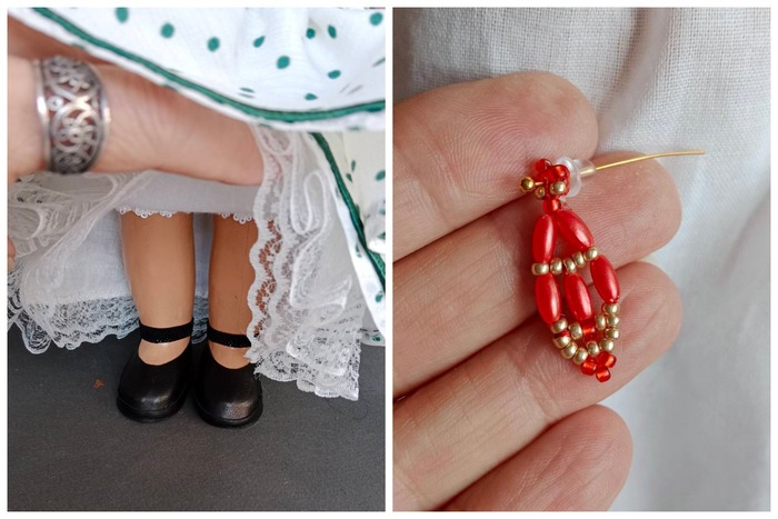 Сделала ей новые бусы, серьги и цветы . И туфельки)
