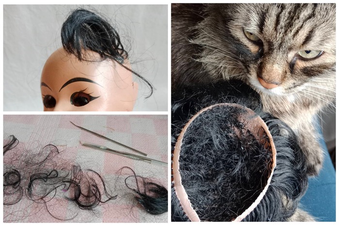 С волосами пришлось тоже повозиться - внутри свалялись в колтун; залысины прошивать прядями по несколько волосков. Кот помогал - морально, не шерстью))