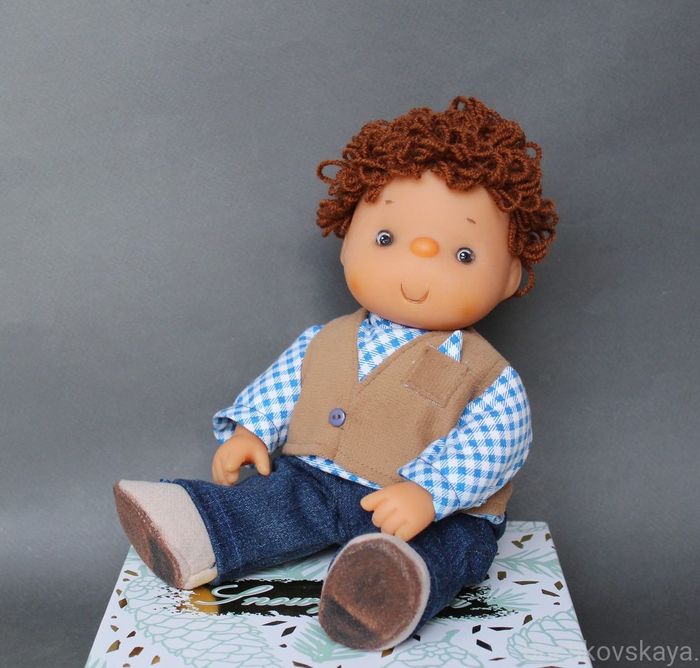 Сшила рубашку. Брючки из джинсовки. Обувь шить не стала - просто нарисовала акриловыми красками подмётки)