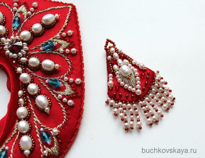 Частичная вышивка жемчугом, металлизированными нитями, бисером и бусинами.