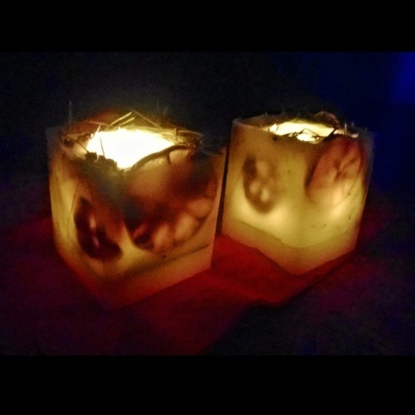 Свечи-подсвечники. Ароматизируют чудесно! Запах нероли и апельсина + добавила еловые веточки и немного гвоздики. Внутри установлена свеча-таблетка.