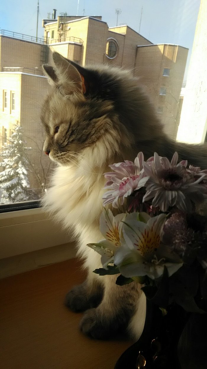 Сам кот очень умный, хоть мы и за городом живем в своем доме, может ходить на лоток (отвозила его маме зимой пожить, пожил, но просился на улицу), кастрирован, очень любит ласку, сам очень ласковый, реально быстро все понимает, мне даже кажется слишком быстро. Спит долго и любит спать с человеком, очень уютный. Ловит всех - ящериц, птиц, мышек.... Видимо предыдущий год это был его рацион. Очень, кстати, любит ящерок поесть.