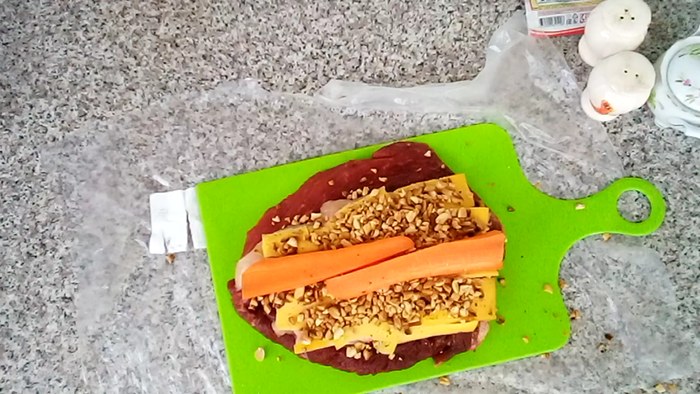 Представляю вам уникальный рецепт праздничного блюда - мясной рулет " Галактика" из говядины. Это блюдо будет основным украшением вашего праздничного стола. Все слои ароматного мяса говядины и нежнейшего куриного филе, пропитаны сливочным сыром. Жареный арахис придает блюду изысканную пикантность. Сочетание чеснока, красного и черного перцев придают блюду необходимую остроту. Блюдо обладает тонким деликатесным вкусом. И отвечает требованиям самых взыскательных гурманов. Ваши гости будут просить рецепт этого блюда. Не делитесь этим рецептом! Пусть рулет " Галактика" будет вашим фирменным семейным рецептом. Приготовьте мясной рулет " Галактика"! Пусть в вашем доме всегда будет праздник!