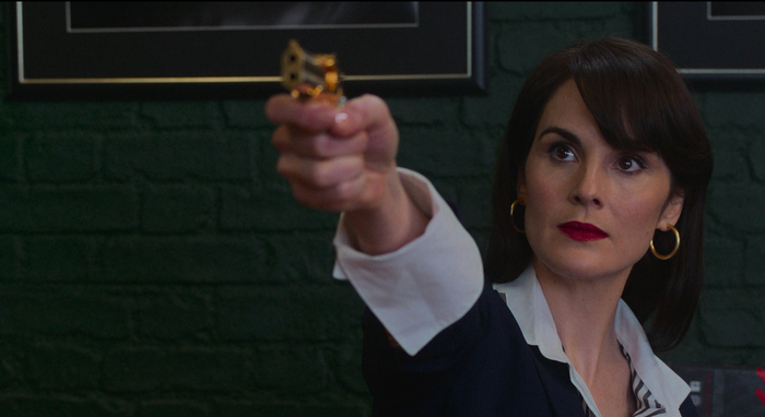 Дама сердца Микки тоже всегда одета безупречно. Первый раз мы видим ее мельком, в вечернем платье, зато потом режиссер выделяет этого персонажа отдельно, так, что понятно, что это не очередной фон для героя, а личность, которая сыграет не последнюю роль. Для первого впечатления на зрителя она одета, кстати, тоже в костюм, женственности которому добавляет молния на спине.