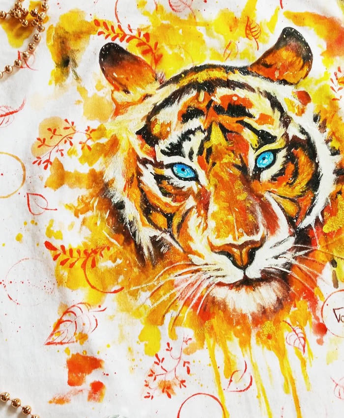 Вот такого тигра нарисовала для любимой невестки. Картинку увидела на Пинтересте, но преобразила ее, добавив авторских ляпок, завитушек и красочных потеков