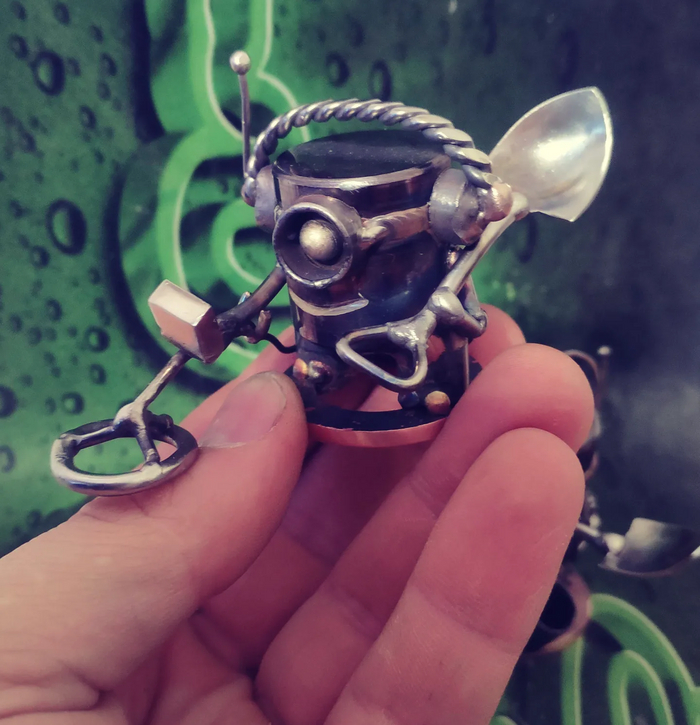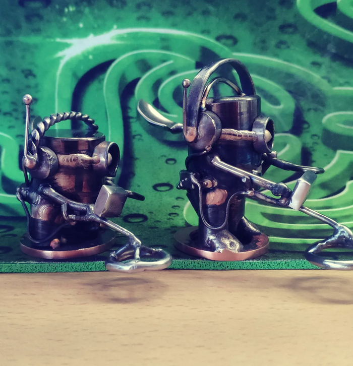 51 one24rus 2 года назад Рукодельники Миньон кладоискатель) Всем привет.Сделал ещё парочку прикольных миньонов из металла.Из материалов использовал медь, бронзу, нержавейку и чернуху. Приятного просмотра) Показать полностью 5 [моё] Рукоделие без процесса Своими руками Миньоны Фигурки Длиннопост 1 1 Ещё 0