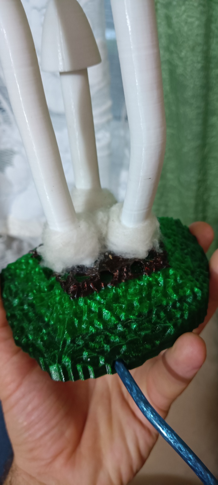 Основание/подставка напечатана из переработанных мною бутылок, об этом можно глянуть тут Я освоил 3D печать бутылками #2, процесс переработки бутылок в филамент